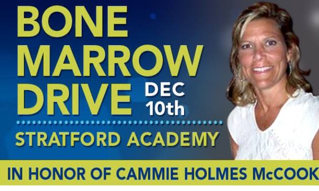 Tomorrow, December 10th from 8:00 am until 10:30 am and then again from 4:00 until 7:00 pm you have the chance to save a life. A Bone Marrow Drive will be held at Stratford Academy in honor of Cammie McCook.