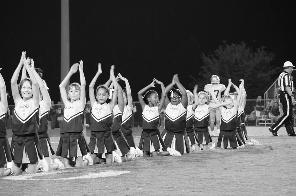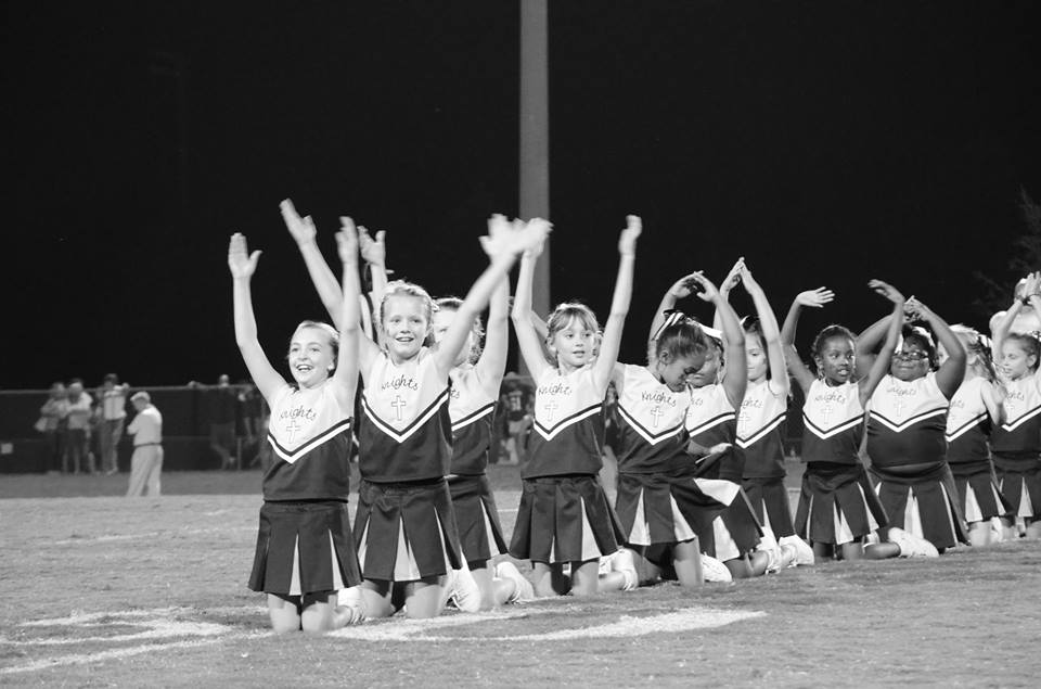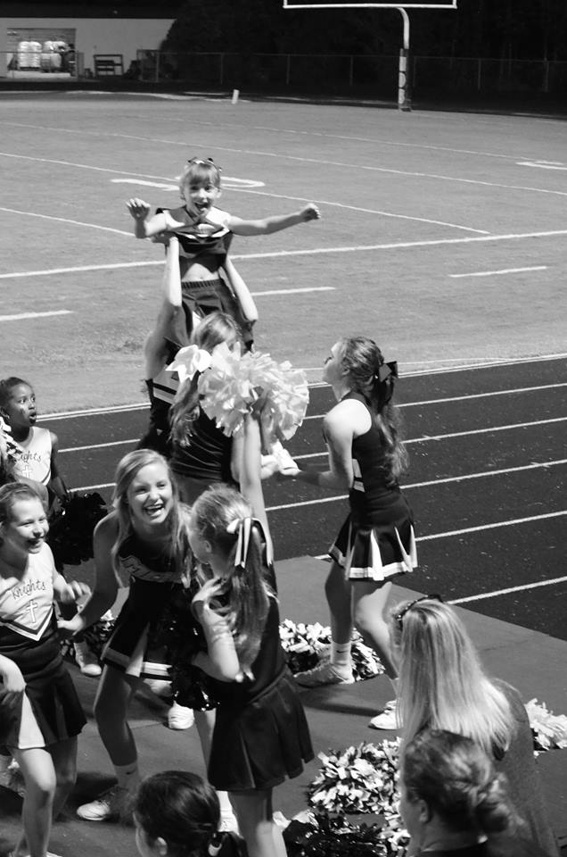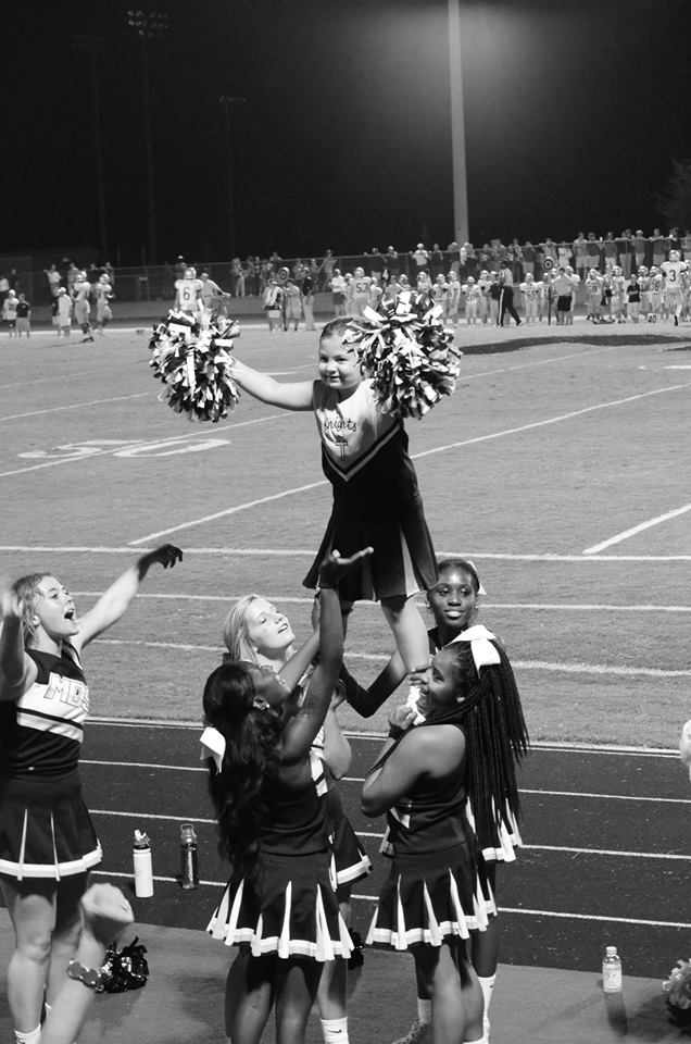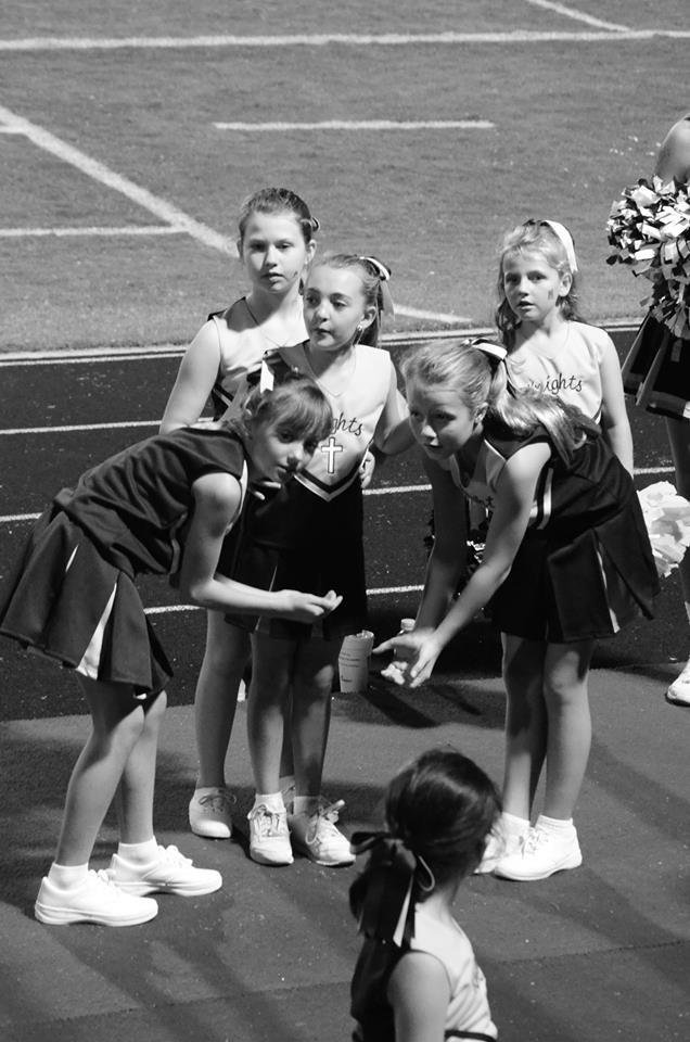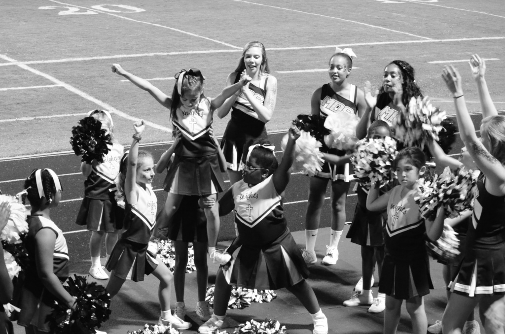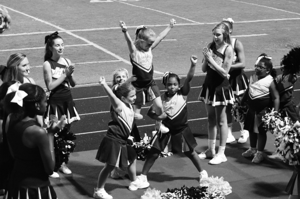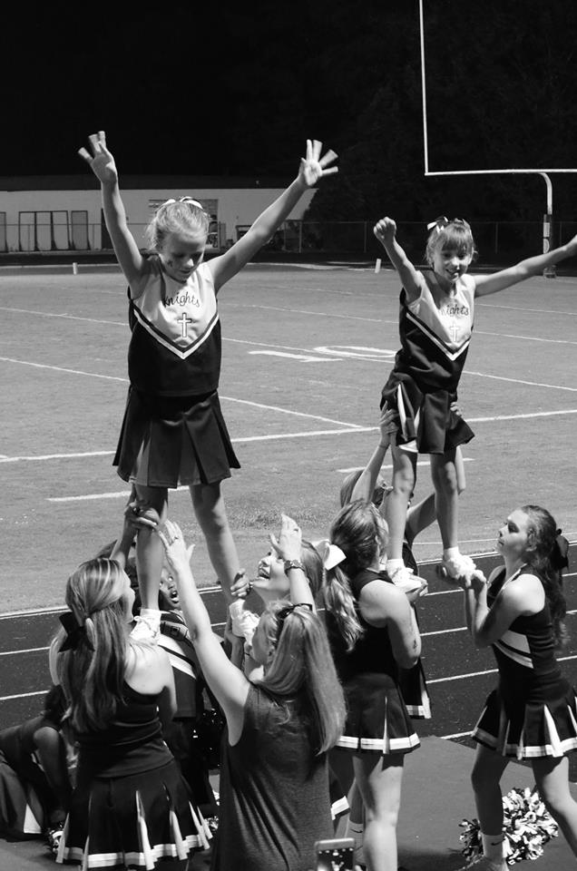 Of course, mine aren’t old enough for high school sports. But we got a little taste of it last night when my daughter, a student at St. Joseph’s School, and her cheerleading squad got to cheer with the varsity ladies of Mount de Sales Academy.