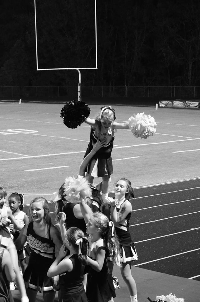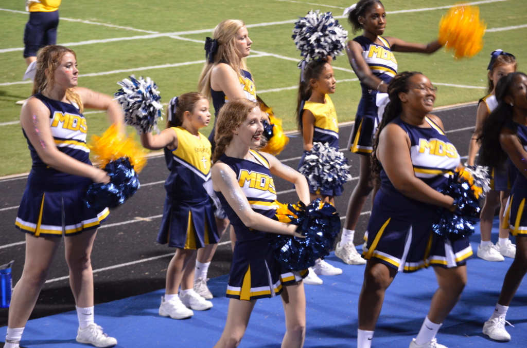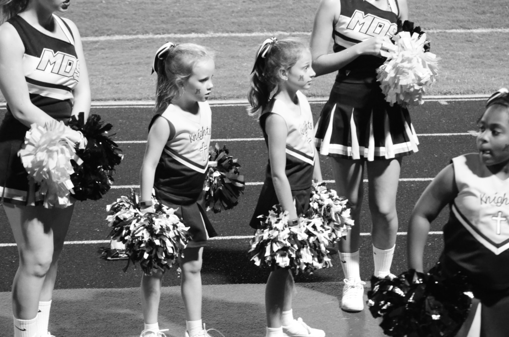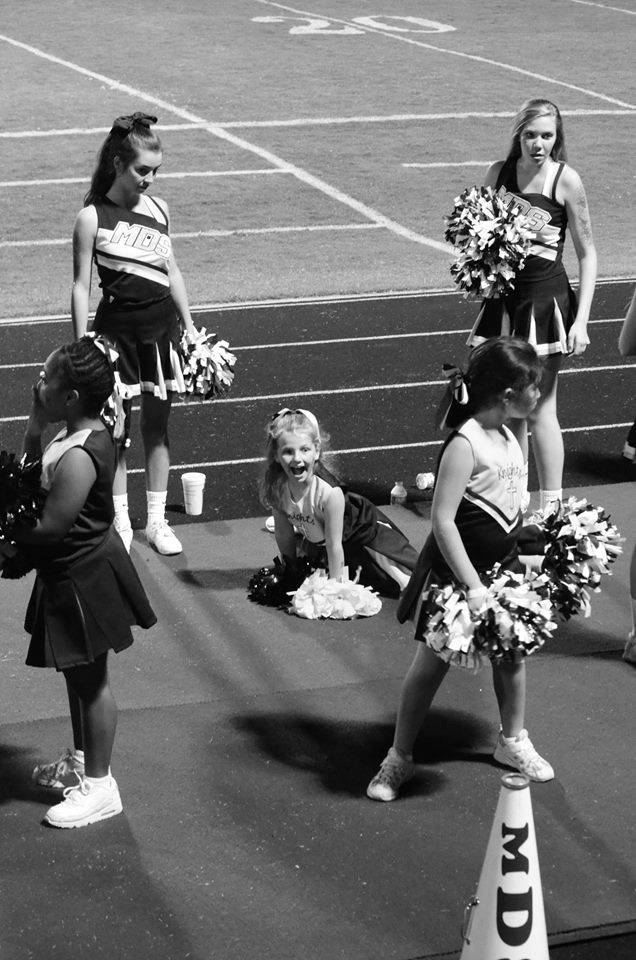 The MdS cheerleaders were gracious in their approach with the girls. Switching pom poms with them, helping them do stunts, showing them their routines, and cheering the cheers the little girls knew along with their own.