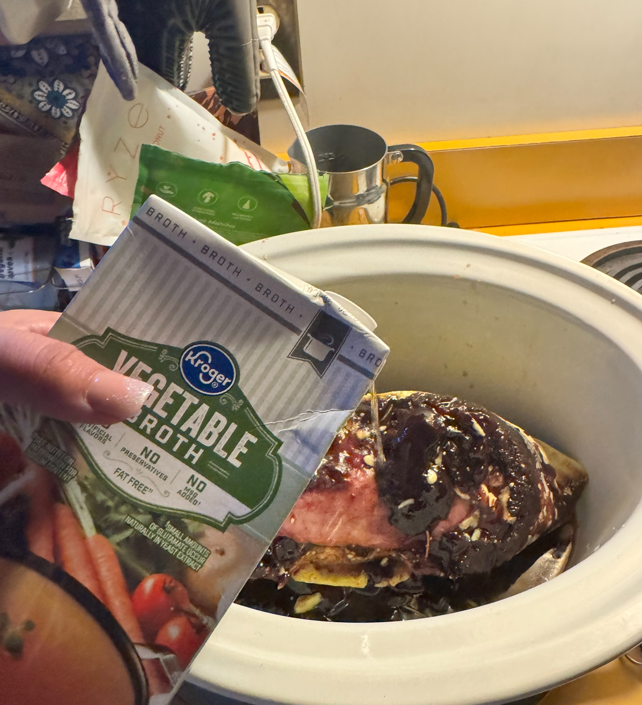 I also like to add vegetable broth so there’s some liquid in it while cooking.